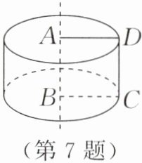 7. 如图,正方形ABCD的边长为3,以直线AB为轴,将正方形旋转一周,从左面看到的所得几何体的形状图的周长是