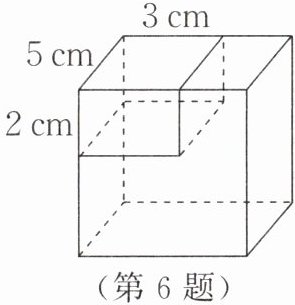 6. 如图所示的是一个正方体,棱长是5cm,如果在它左上方截去一个长、宽、高分别是5cm,3cm,2cm的长方体,求剩下几何体的表面积。
