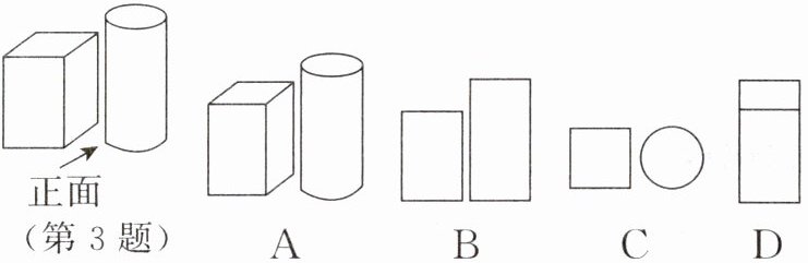 3. 如图,桌子上放着一个长方体形的茶叶盒和一个圆柱形的水杯,则从正面看到的它们的形状图是(