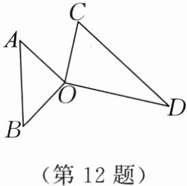12. 如图,一副三角尺放在桌面上且它们的直角顶点重合在点O处。若∠AOD = 150°,则∠BOD的度数为