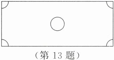 13. 【数学应用】如图,某长方形广场的四角都有一块半径相等的四分之一圆形的草地,中间有一个与草地半径相等的圆形喷水池。若圆形的半径为$r\ m$,长方形的长为$a\ m$,宽为$b\ m$,请用式子表示广场空地的面积。