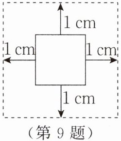 9. 【数学应用】用一根长为 $ a $ cm 的铁丝,首尾相接围成一个正方形,要将它按如图所示的方式向外等距扩 $ 1 $ cm,得到新的正方形,则这根铁丝需增加(
