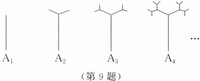 9. 如图所示的是按照一定规律画出的“树形图”,经观察可以发现:图 $A_2$ 比图 $A_1$ 多出 $2$ 个“树枝”,图 $A_3$ 比图 $A_2$ 多出 $4$ 个“树枝”,图 $A_4$ 比图 $A_3$ 多出 $8$ 个“树枝”……照此规律,图 $A_6$ 比图 $A_2$ 多出的“树枝”个数为(