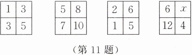 11. 按下列 $2×2$ 的方格中体现出的规律,则 $x$ 应是(