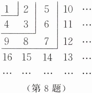 8. 将从 $1$ 开始的自然数按如图所示的规律排列,如位于第 $3$ 行、第 $4$ 列的数是 $12$,则位于第 $45$ 行、第 $4$ 列的数是