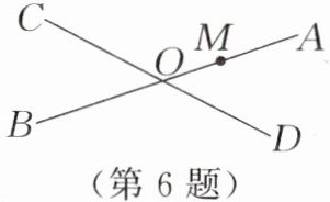 6. 如图,点 $ M $ 在直线 ___ 上,在直线 ___ 外;点 $ O $ 既在直线 ___ 上,又在直线 ___ 上。
