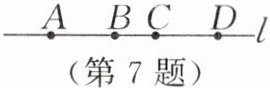 7. 如图,$ A $,$ B $,$ C $,$ D $ 为直线 $ l $ 上的四个点,则图中过 $ B $ 点的直线有