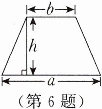 6. 如图,设$S$表示梯形的面积,则可得关系式$S= \frac{1}{2}(a+b)h$。当$S= 30$,$b= 3$,$h= 6$时,求$a$的值。