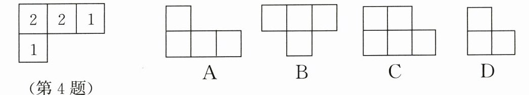 4. 如图所示的是从上面看由几个小立方块所搭成的几何体得到的形状图,小正方形中的数字表示在该位置上的小立方块的个数,从正面看到的这个几何体的形状图是(