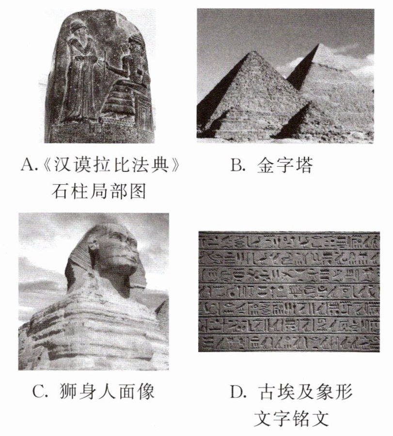 2. 古代亚洲是人类文明的重要发祥地之一。下列文物中,能够证明这一结论的是( )。