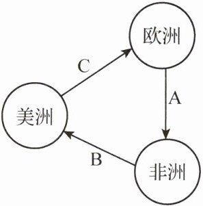 (4)A:火器、机械制品、酒等。B:黑奴。C:蔗糖、烟草等产品。