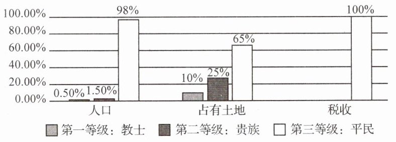 1. 下图是 1789 年法国社会三个等级统计图,该图反映了( )。