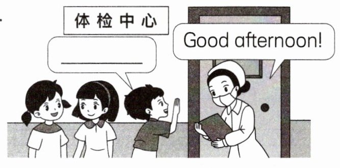 1. 第一幅图是在体检中心,一位医护人员对几位小朋友说“Good afternoon!”,根据日常交际用语,回应也应该是“Good afternoon!”,所以第一空选C。