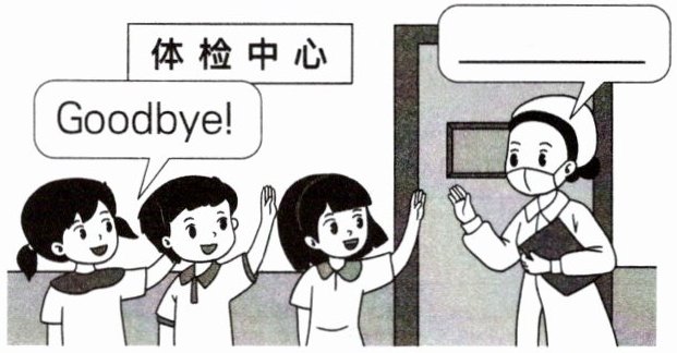 4. 第四幅图是在体检中心,医护人员对小朋友们说“Goodbye!”,根据日常交际用语,回应也应该是“Goodbye!”,所以第四空选A。