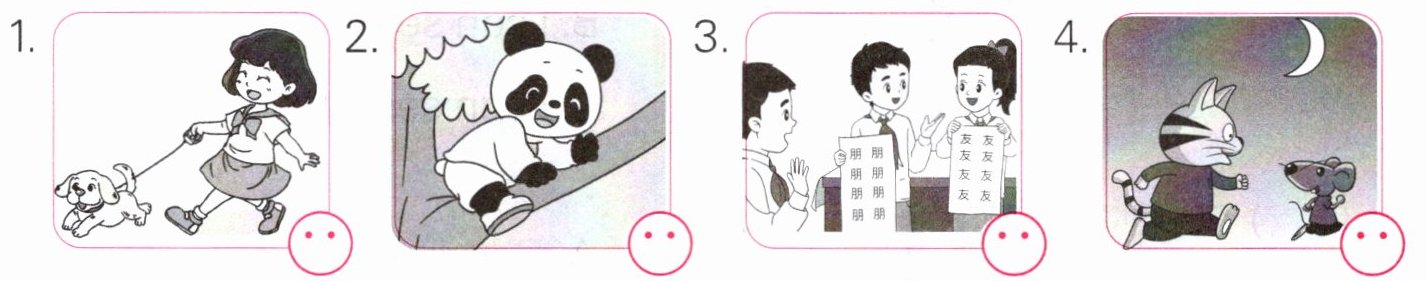 1. 😊/😢 2. 😊/😢 3. 😊/😢 4. 😊/😢