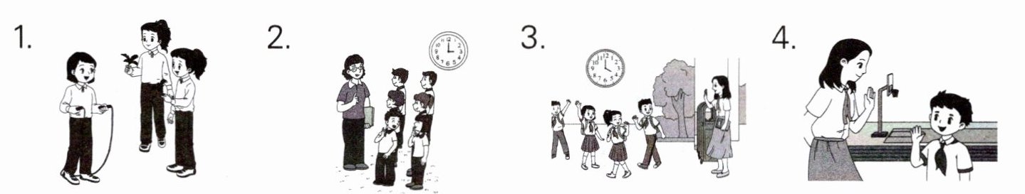 八、根据图片,选择匹配的对话,将序号填在图片下方的括号里。