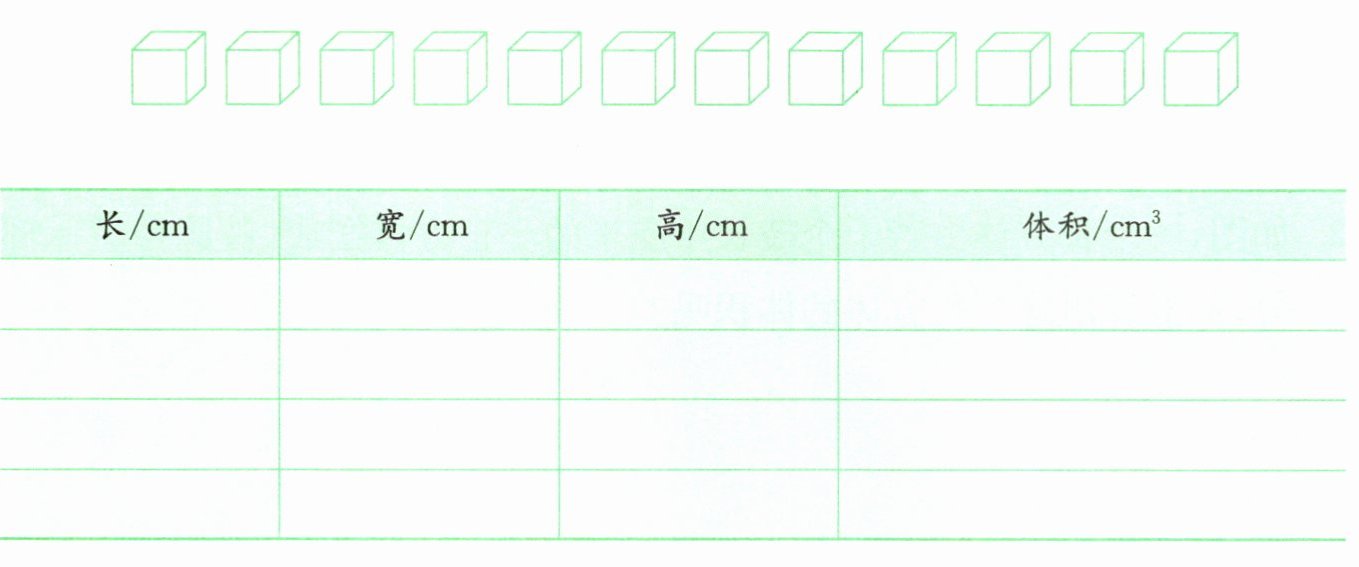 5.(选做题)用 12 个 1 立方厘米的小正方体摆成一个长方体,有多少种不同的摆法?在下表中填一填。(假设长≥宽≥高)