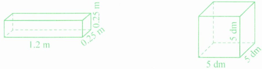 长方体的体积为$0.075 m^3$,正方体的体积为$125 dm^3$。