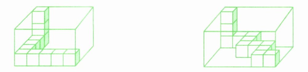 4. 明明在下面两个长方体玻璃容器中,摆了若干个1立方厘米的小正方体。算出每个玻璃容器的容积,填在下面的括号里。