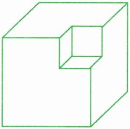 3. 如图,在一个棱长3分米的正方体的一个顶点处挖去一个棱长1分米的小正方体。求剩下部分的表面积。