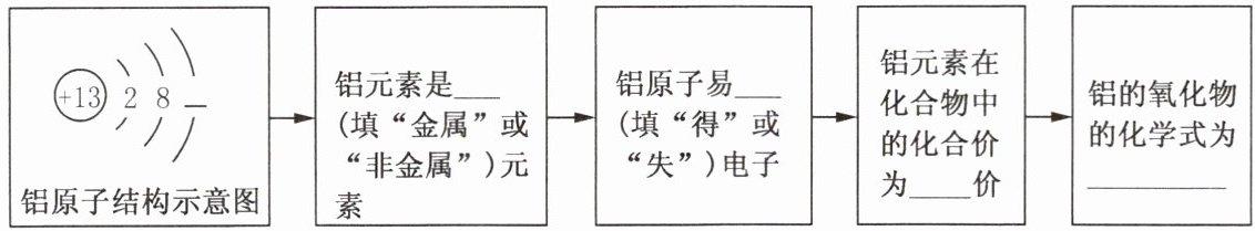 →铝原子结构示意图→铝元素是______(填“金属”或“非金属”)元素→铝原子易______(填“得”或“失”)电子→铝元素在化合物中化合价为______价→铝的氧化物的化学式为______