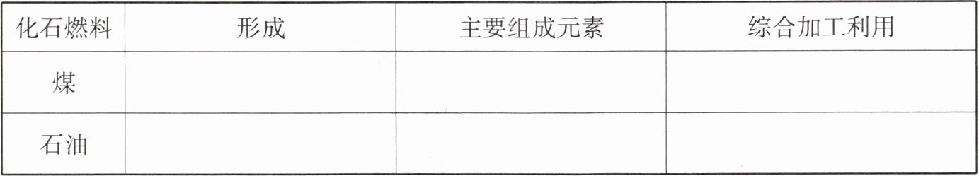 |化石燃料|形成|主要组成元素|综合加工利用|