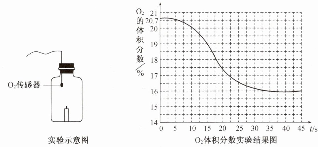 实验:一定条件下,蜡烛在一瓶空气中燃烧。某同学利用$O_2$传感器,测定燃烧过程中$O_2$的体积分数。(如下图所示)