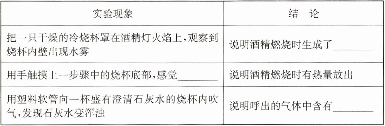 |用手触摸上一步骤中的烧杯底部,感觉______|说明酒精燃烧时有热量放出|