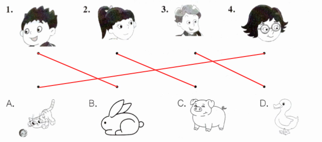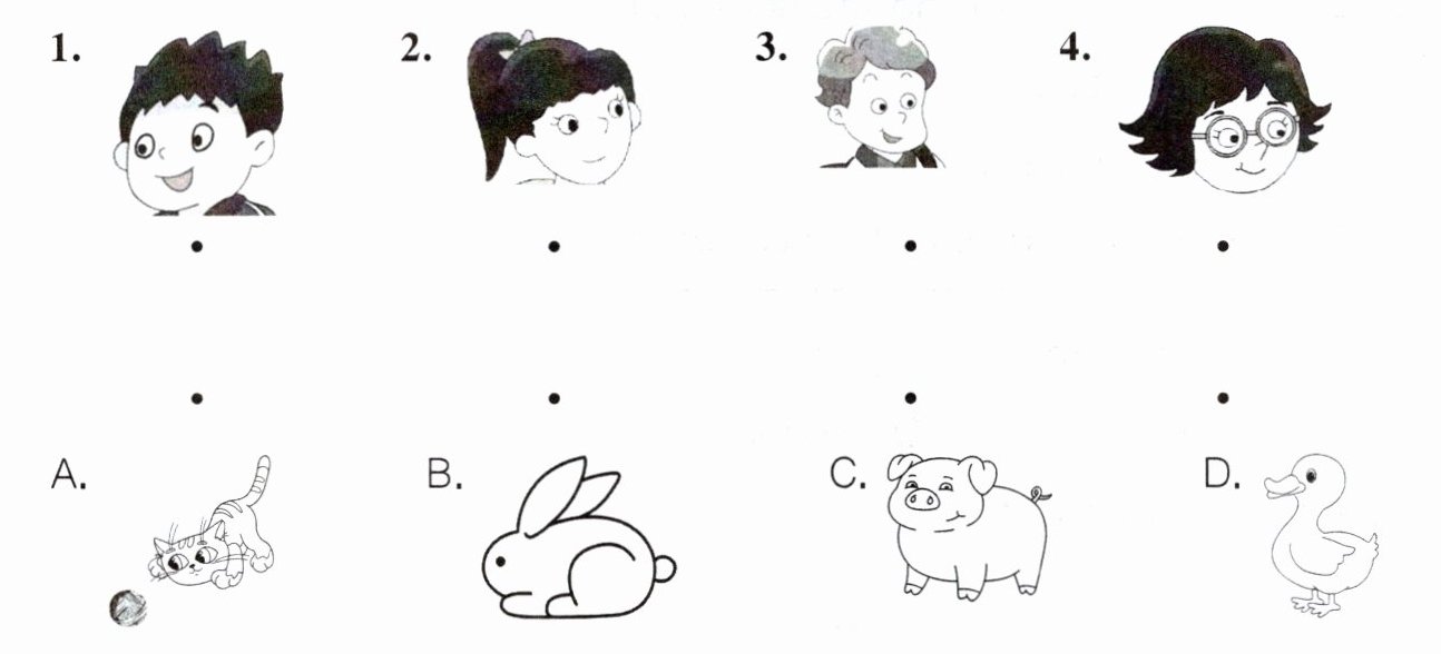 D) 听录音,按所听到的内容将人物与动物朋友连线。(听两遍)