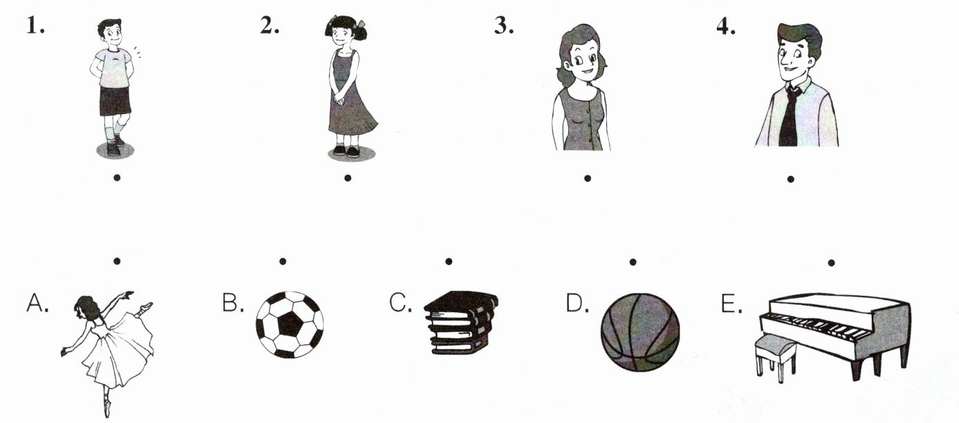 A) 听录音,按所听到的内容将人物与爱好连线。(听两遍)
