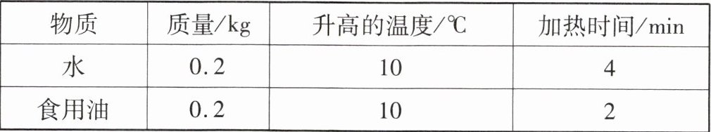②已知水的比热容是4.2×10³ J/(kg·℃),则食用油的比热容是