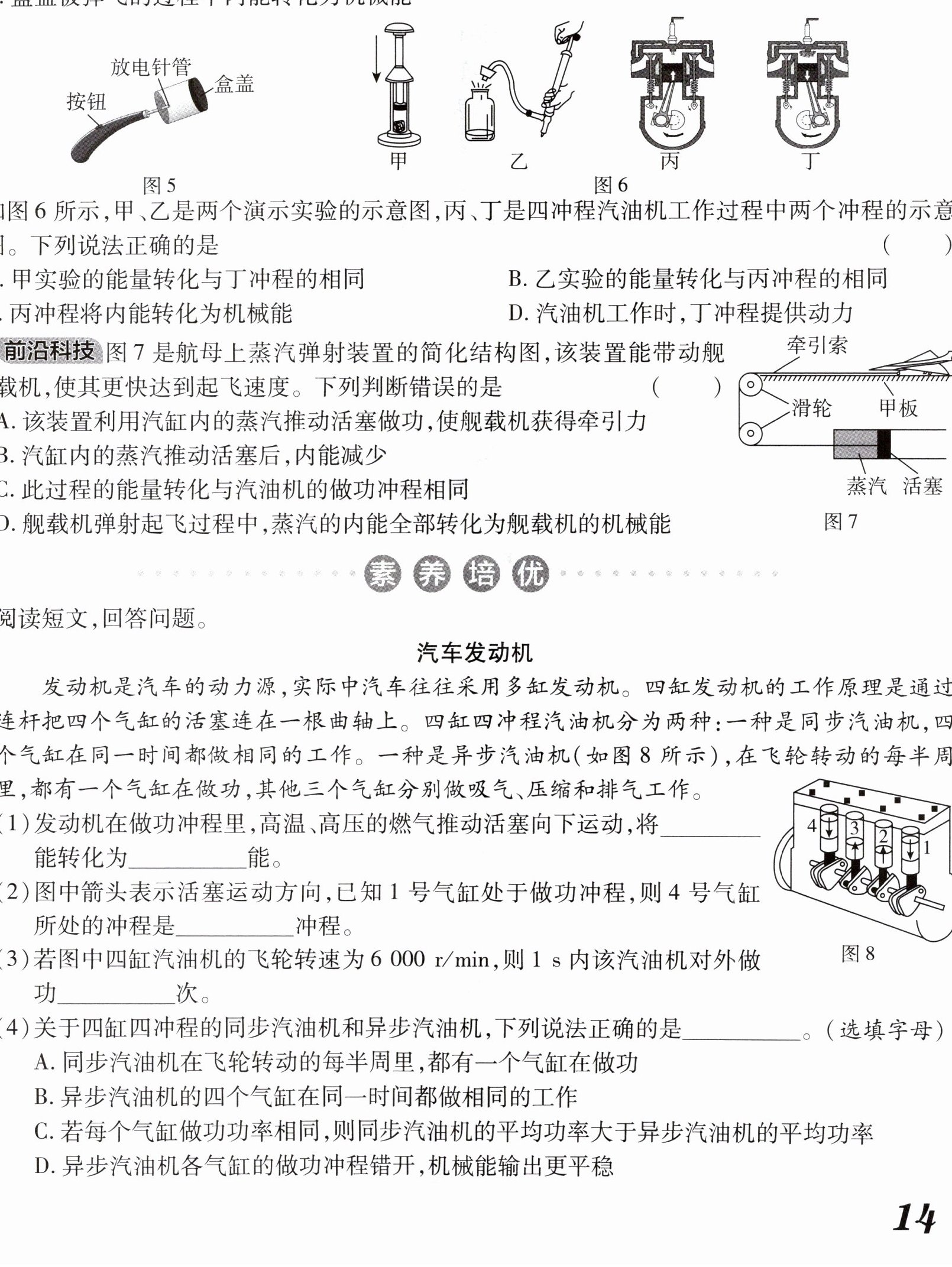 能。(2)图中箭头表示活塞运动方向,已知1号气缸处于做功冲程,则4号气缸所处的冲程是