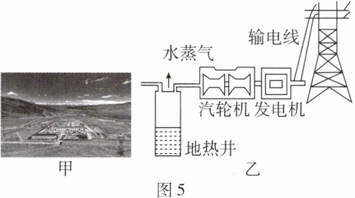 (1) 分析图5-乙可知,从地热井到汽轮机再到发电机,其能量转化是内能→