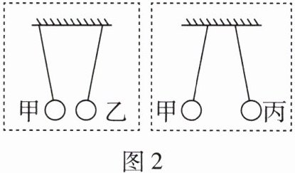 2. 将甲、乙、丙三个轻质泡沫小球用绝缘细绳悬挂在天花板上,它们之间相互作用的情况如图2所示,已知丙球所带的电荷与用丝绸摩擦过的玻璃棒所带的电荷相同,下列判断正确的是(