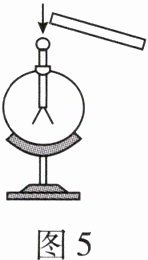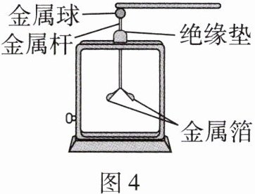4. 如图4所示,用毛皮摩擦过的橡胶棒与验电器的金属球接触后,验电器的金属箔张开。下列说法不正确的是(