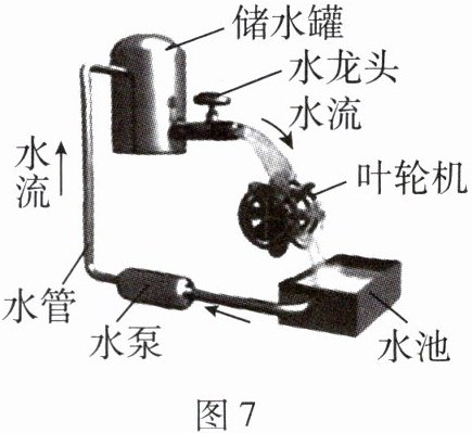 水龙头可类比成开关 叶轮机可类比成用电器(水泵可类比成电源 水管可类比成导线)