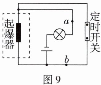 11. 物理与工程 某爆破工程需使用定时炸弹,其内部的引爆电路如图9所示,当起爆器中有电流通过时,炸弹就会被引爆。为实现定时爆破功能,定时开关在定时阶段应处于