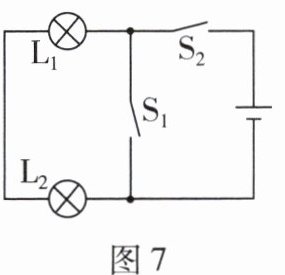 9. 图7所示的电路中,要使两灯泡同时发光,应 (