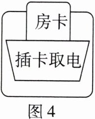 7. 图4所示为宾馆房间的房卡,将房卡插入卡槽中,房间内的用电器才能使用,则房卡相当于电路元器件中的