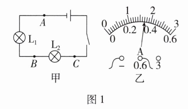 。(3) 排除故障后进行实验,电流表指针的偏转情况如图1 - 乙所示,然后将电流表分别接在B点和C点测量电流,请将表格补充完整,并把实验数据记录在表格中。