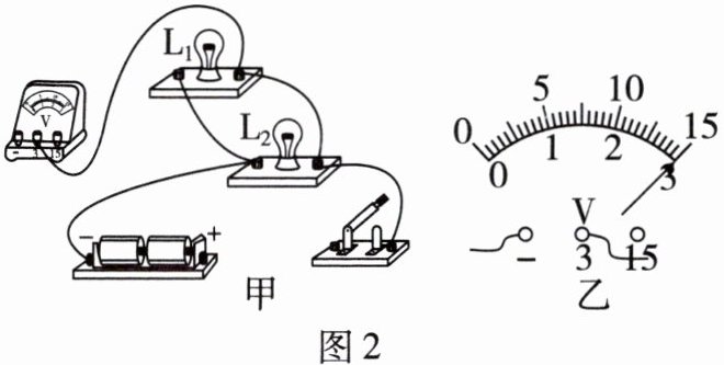 2. 在“探究并联电路中电压的特点”实验中,实验电路如图2 - 甲所示。