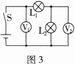 3. 关于图3所示的电路,闭合开关后,下列说法正确的是()