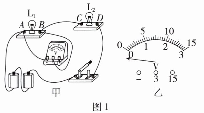 1. 在“探究串联电路中电压的特点”实验中,小广连接的实物电路如图1 - 甲所示。