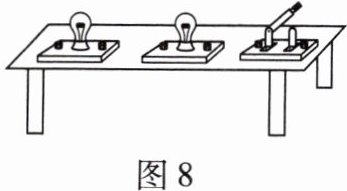 10. 科学推理 如图8所示,桌面上有两个灯泡和一个开关,它们的连线在桌面下方(只有一个电源),无法被看到。闭合开关,两灯泡同时发光。下列现象中,可以判断出两灯泡一定串联的是