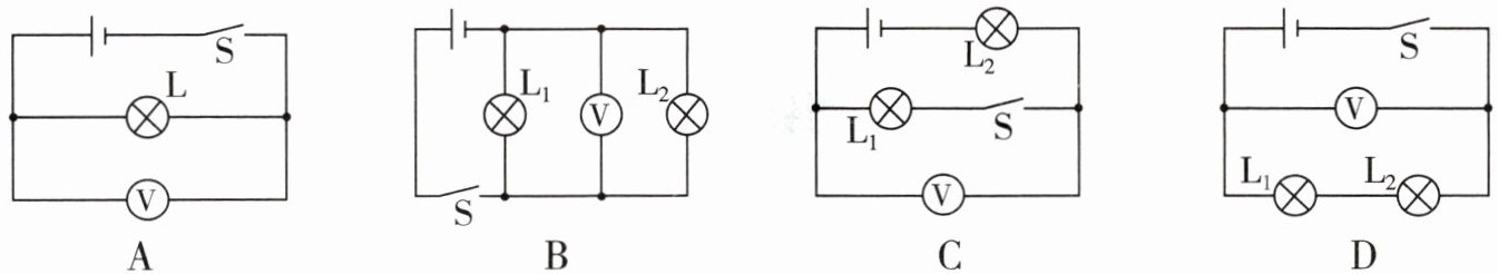 6. 下列电路中,开关闭合后,电压表的示数与电源电压不相等的是()