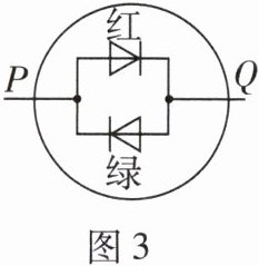 (选填“导体”“半导体”或“绝缘体”)材料制成的。某部分$LED$灯的电路如图3所示,若电流从$P$点流入,则红色