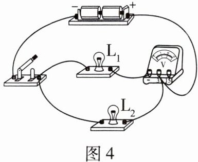11. 在“探究串联电路中电压的规律”实验中,为测量灯L₂两端的电压,小红连接了如图4所示的电路。经检查,有一根导线连接错误,请你在接错的导线上打“×”,并画出正确的接法。