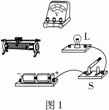 8. 如图1所示,电源为两节新干电池,请将实物图连接完整。要求:电压表测灯L两端的电压;开关S闭合后,滑片向右移动时灯L变亮。