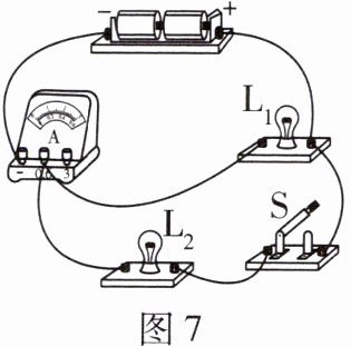 7. 在图7所示的电路中,电源电压不变,灯L₁、L₂中有一个发生断路。若闭合开关S时,电流表的示数不变,说明灯