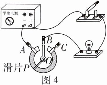 4. 某调光灯的简化电路如图4所示,电源电压保持不变。闭合开关后,为使小灯泡变得更亮,应沿